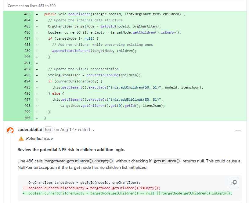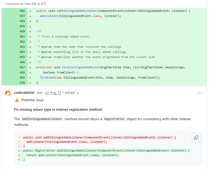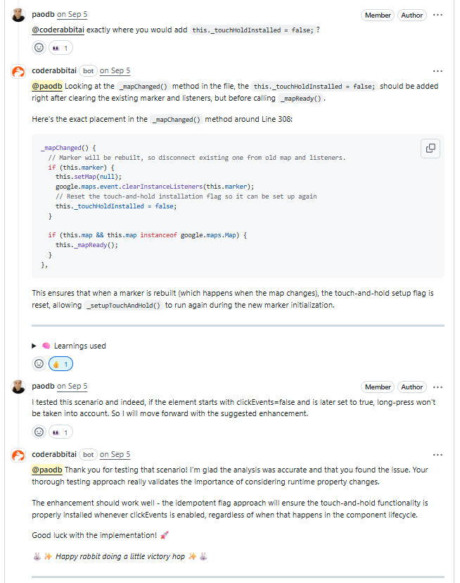 From that point on, the interaction felt different. It was not just that we managed to tune it, it also felt like the tool itself was “learning” what we needed. With every passing review we noticed the feedback became more meaningful and targeted. The real breakthrough was noticing how CodeRabbit could reliably take care of the repetitive checks (style, consistency, small details) so we could focus on the things that truly require human judgment: design choices, architecture, and deeper logic.