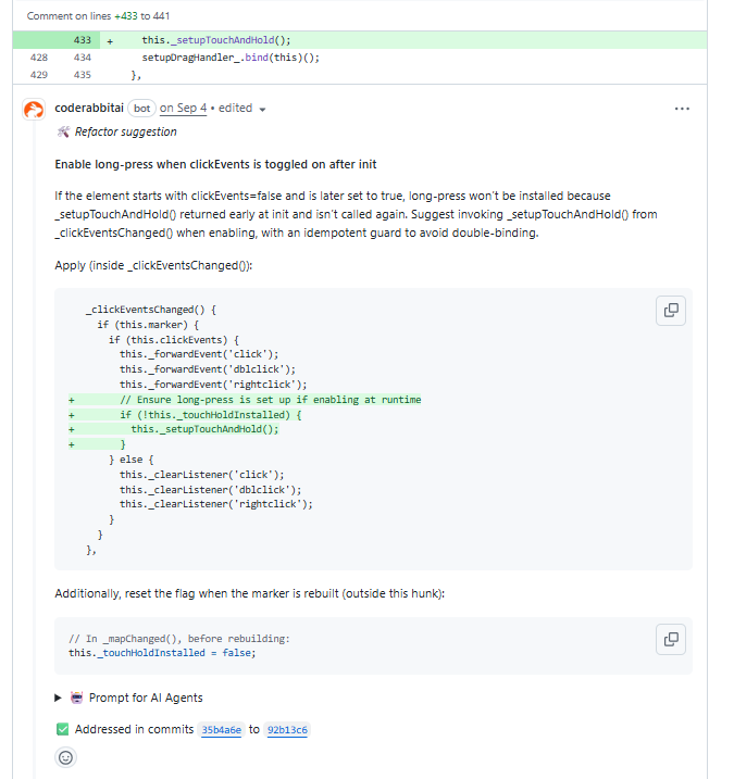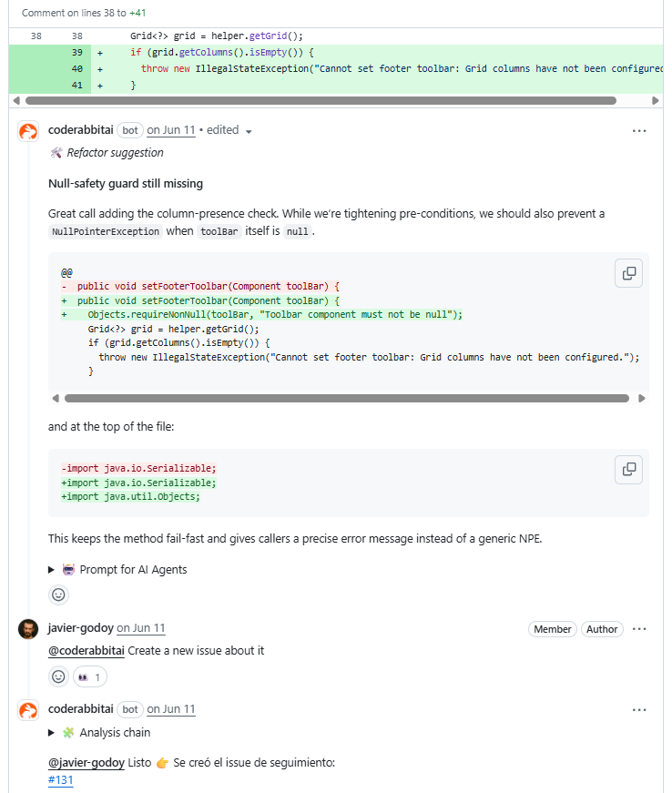 - Validation against issues: CodeRabbit helps check whether the commits in a PR align with the GitHub issue it’s supposed to solve. That saves us from “fixes issue X” PRs that only solve part of the problem.
